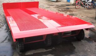 4 support crutches with adaptive heads, full hot-dip galvanized tray, anti-slip, 4 lashing chains. Ramp mounted on flexible solid tires, 2 adjustable support crutches per piece.